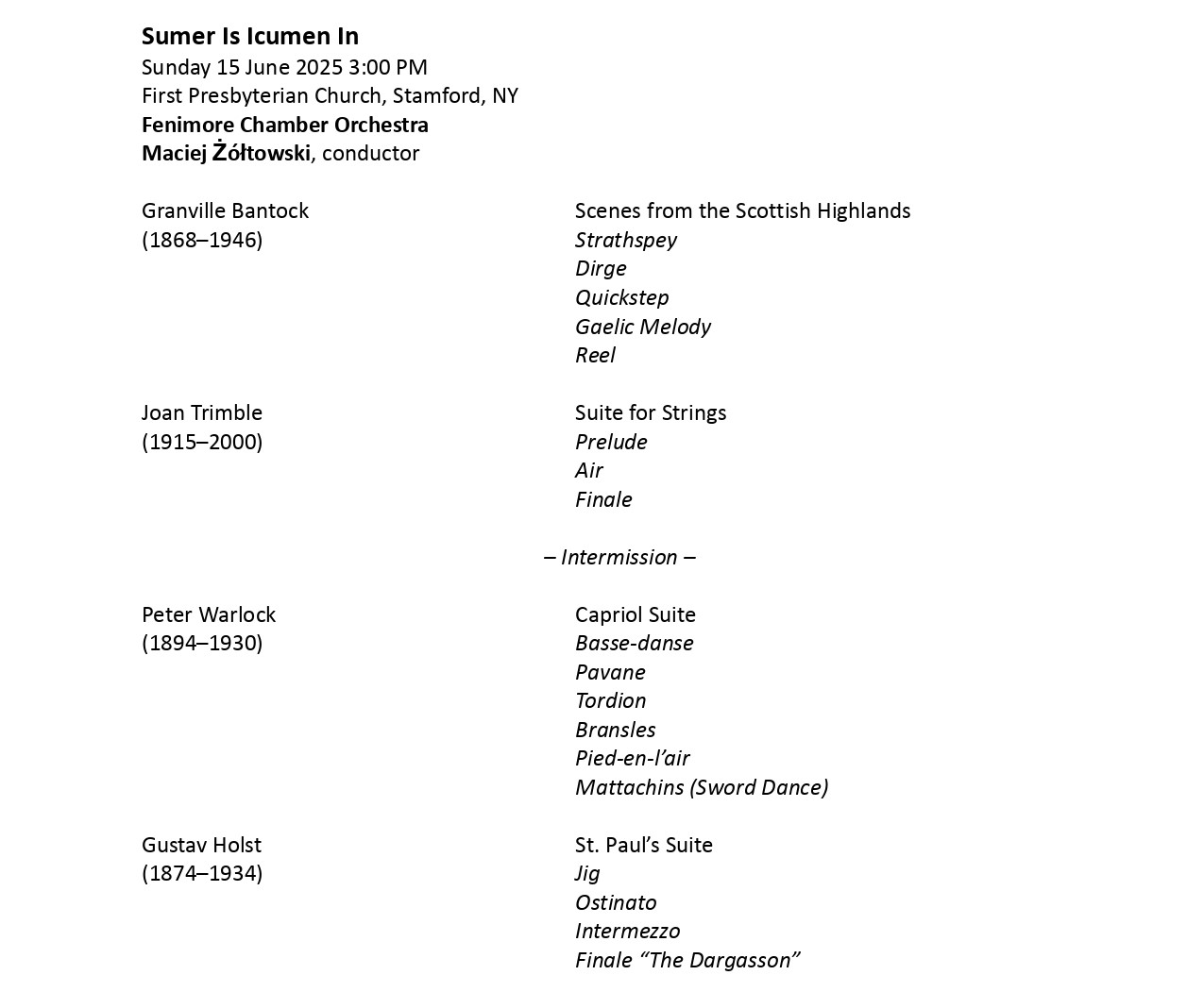 Friends of Music of Stamford, NY is proud to present the critically acclaimed Fenimore Chamber Orchestra in concert on Sunday, June 15, 3PM.