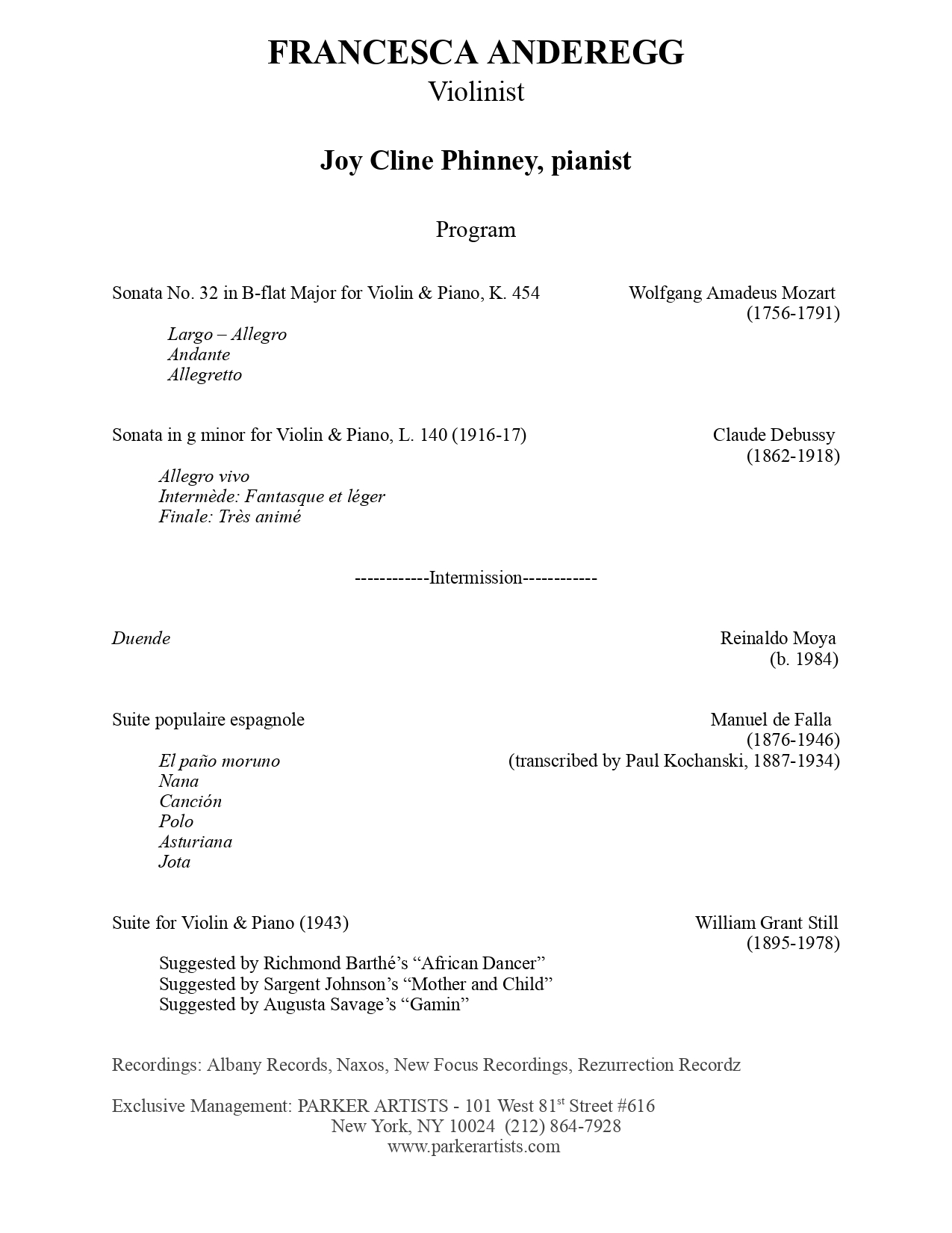 Francesca Anderegg, violin & Joy Cline Phinney, piano