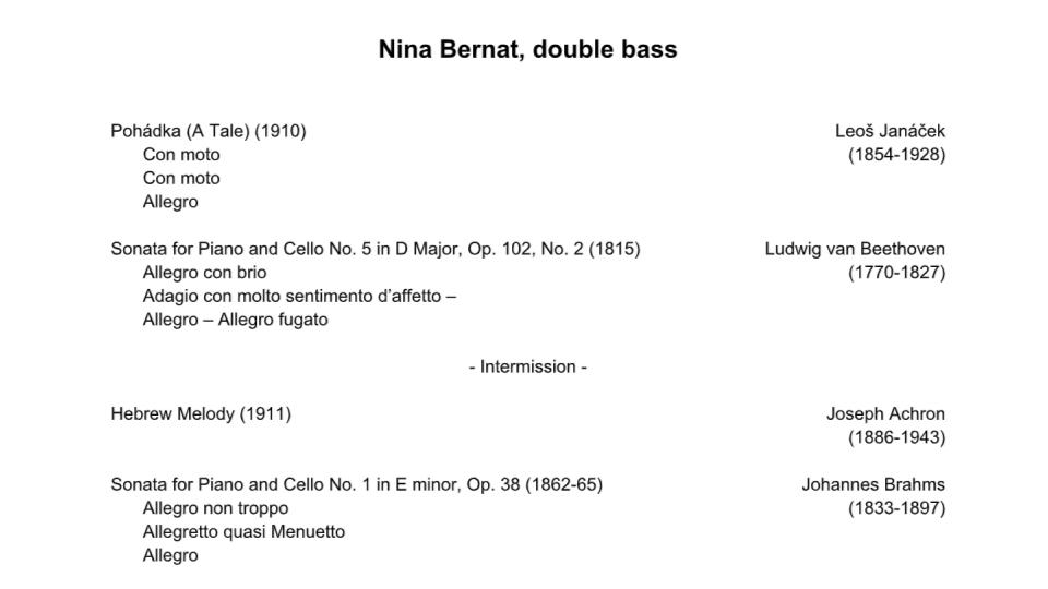 Nina Bernat, double bass & Anthony Ratinov, piano