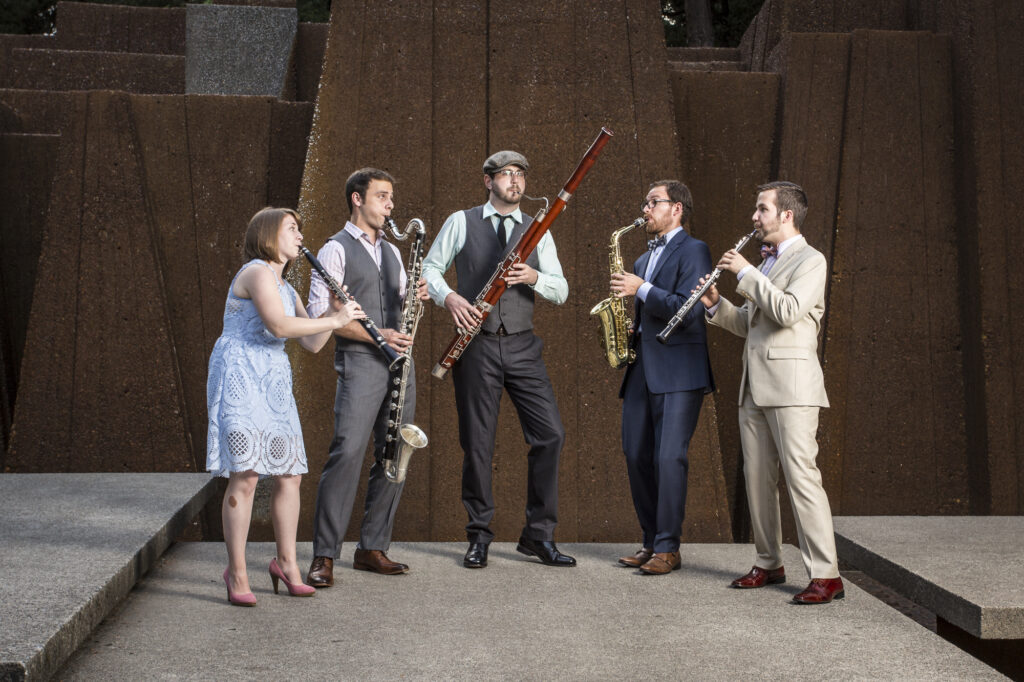 The Akropolis Reed Quintet is: Tim Gocklin (oboe), Kari Landry (clarinet), Matt Landry (saxophone), Andrew Koeppe (bass clarinet), and Ryan Reynolds (bassoon).